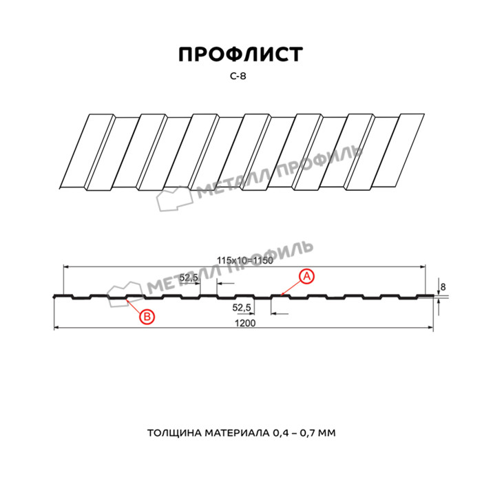 Профлист Металл Профиль С-8 0.28 и менее Полиэстер RAL 8017 Коричневый шоколад | A Показать информацию