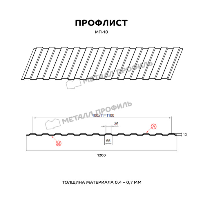 Профлист Металл Профиль МП-10 0.35 и менее Цинк Бесцветный | A